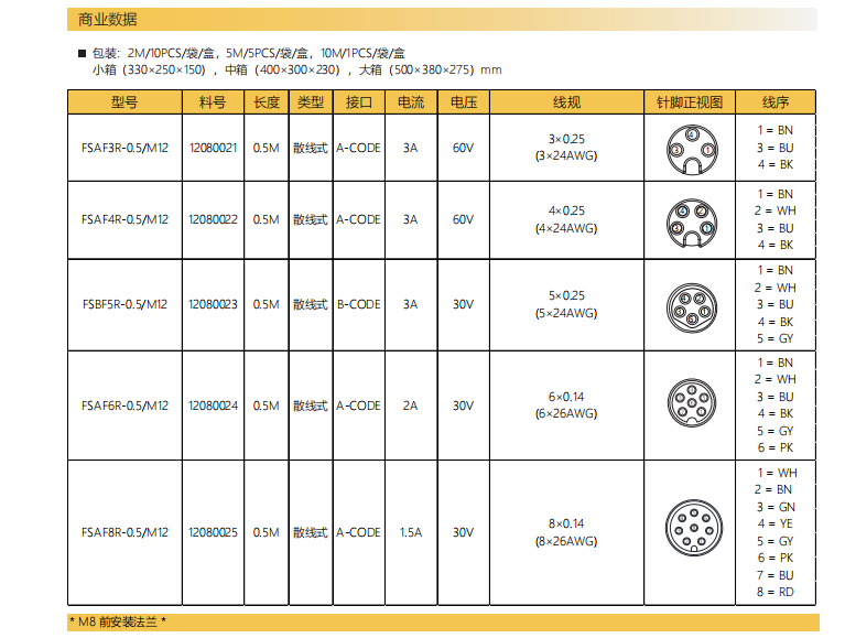 M 8-口金-フランジコネクタ-後付け-散線式-3+4+5+6+8 PIN