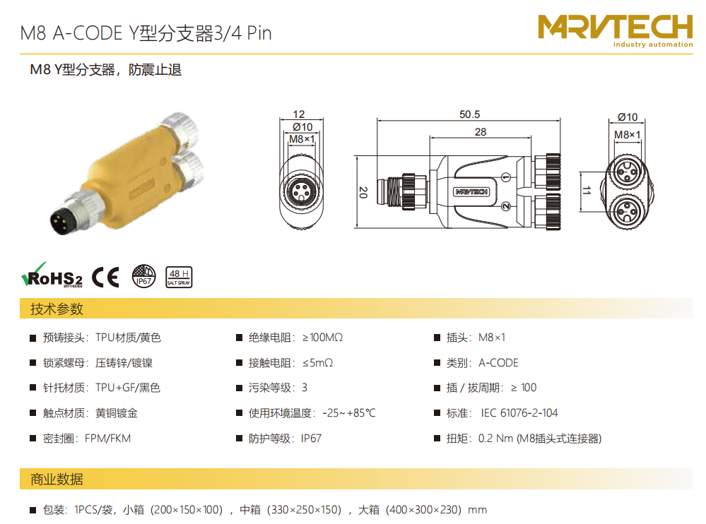 M 8-A-CODE-針-プレキャストコネクタ-防振後退止め-4 PIN