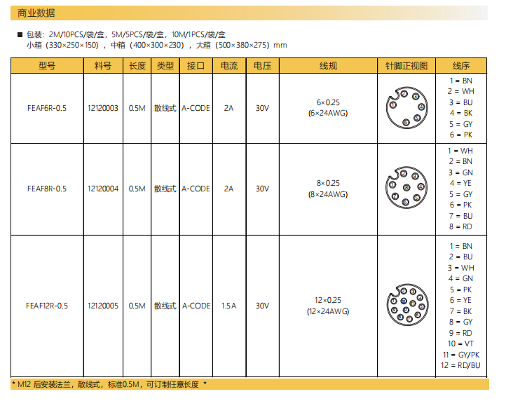 M 12-口金-フランジコネクタ-後付け-散線式-6+8+12 PIN