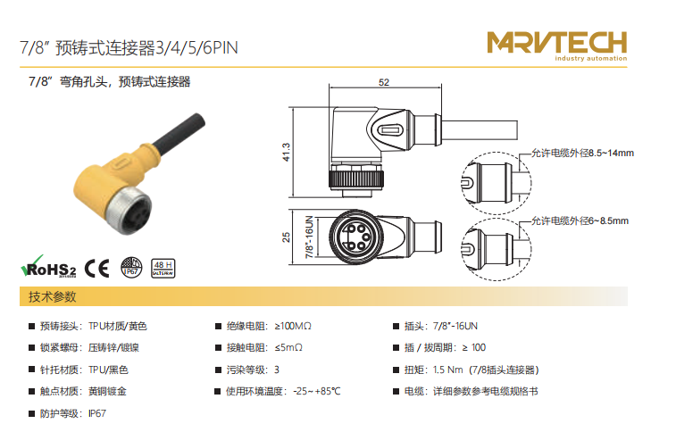 7/8"-針-プレキャストコネクタ-3+4+5+6 PIN
