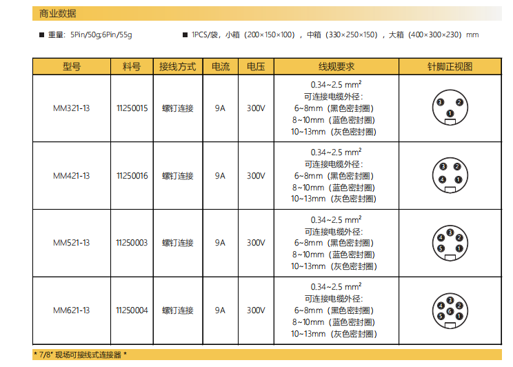 7/8"-コーナーニードル-現場結線可能コネクタ-プラスチックケース-アルミニウム鋳造ナット-3+4+5+6 PIN