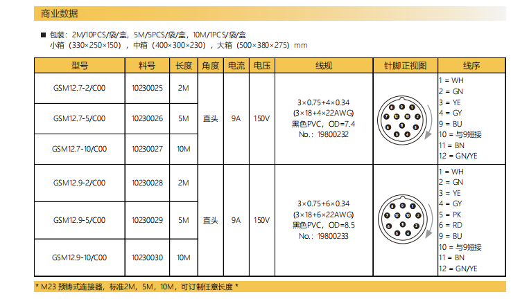 M 23-雄ねじ-針-プレキャストコネクタ-12.7+12.9 PIN