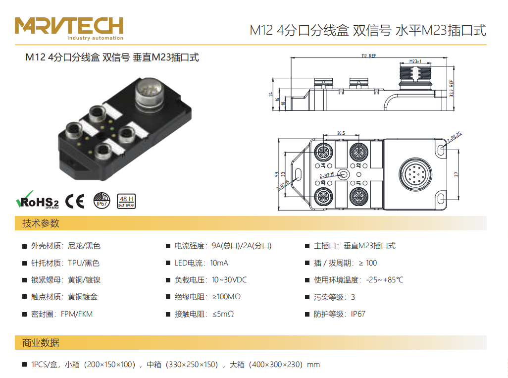 M 12 4タップ分線ボックス-デュアル信号-垂直M 23ソケット式