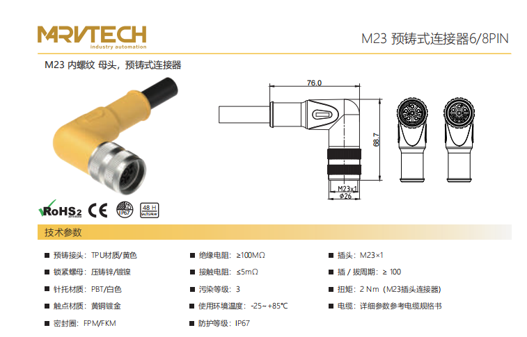M 23-雌ねじ-メス-プレキャストコネクタ-6+8 PIN