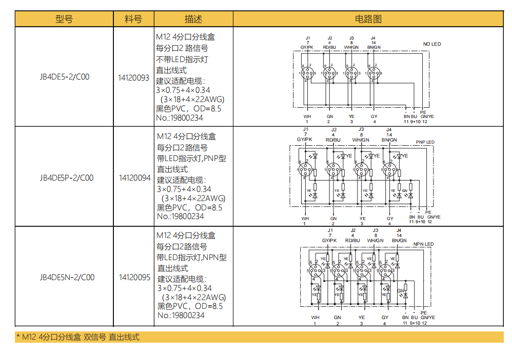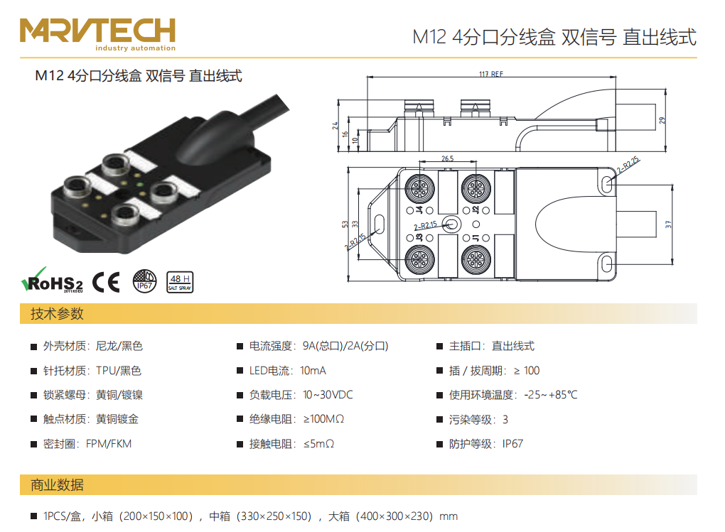 M 12 4タップ分線ボックス-デュアル信号-水平M 23ソケット式