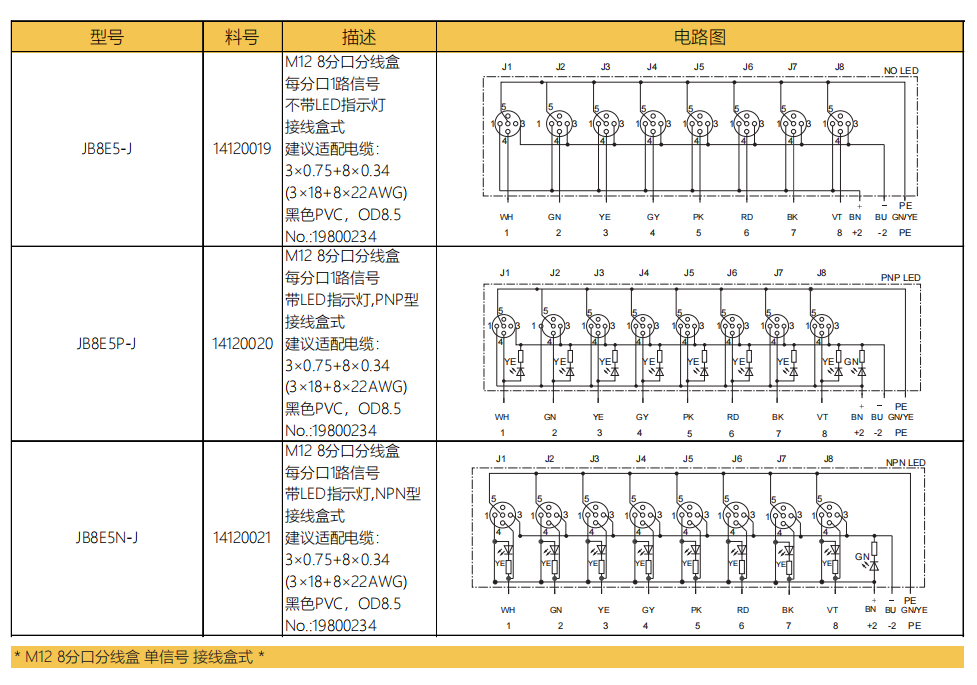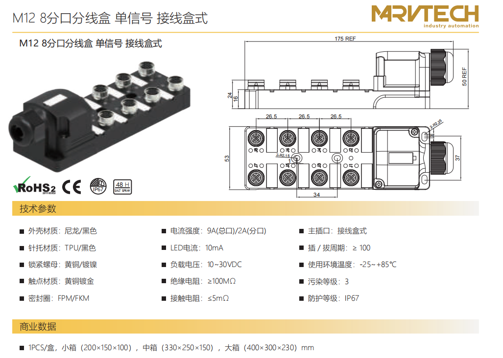 M 12 8タップ分線ボックス-単信号-垂直M 23ソケット式