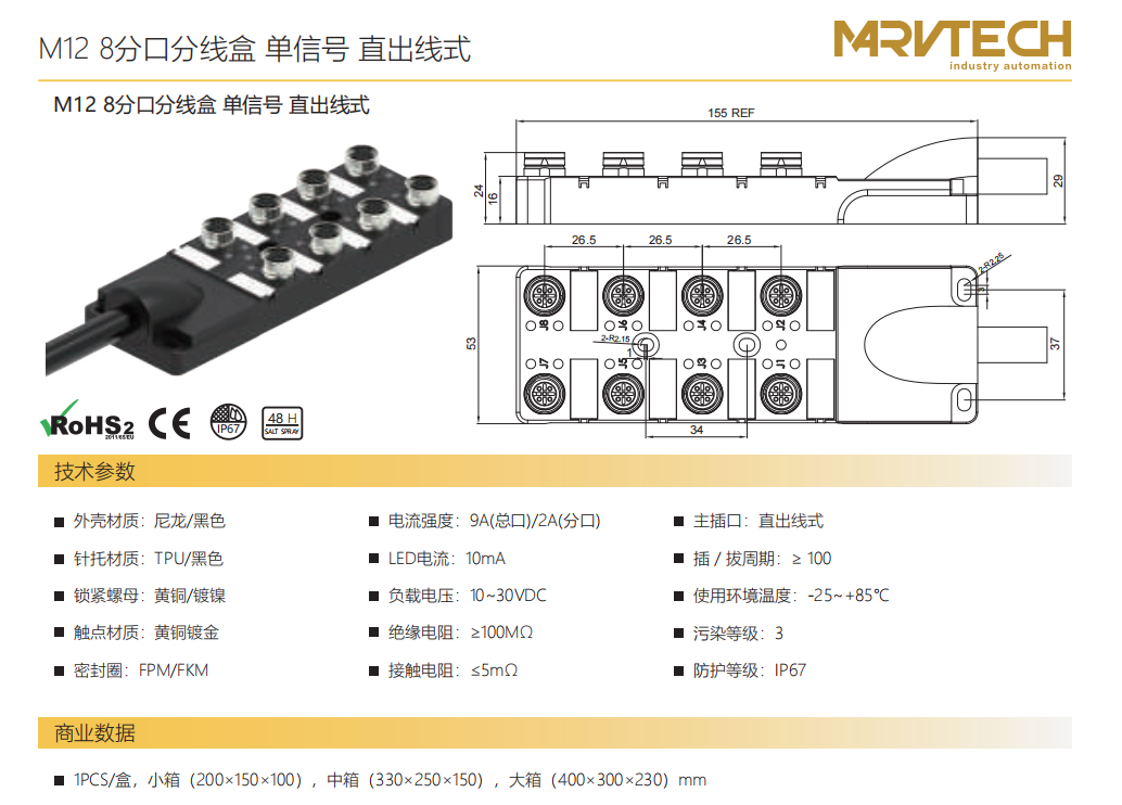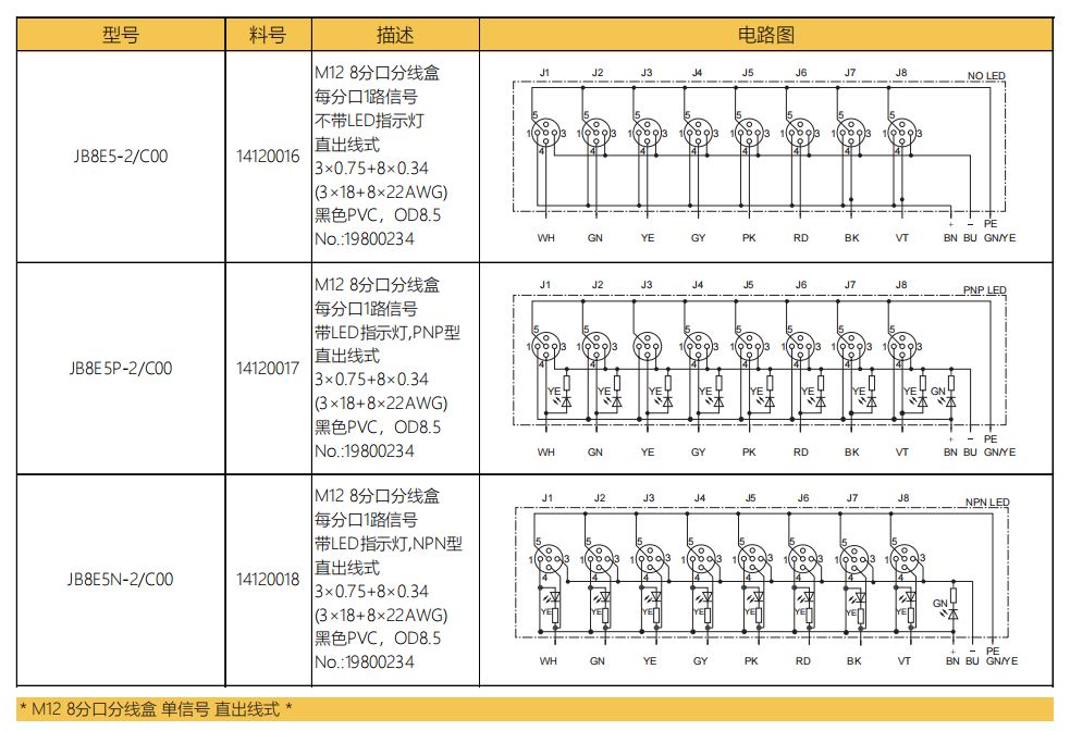 M 12 8タップ分線ボックス-デュアル信号-垂直M 23ソケット式
