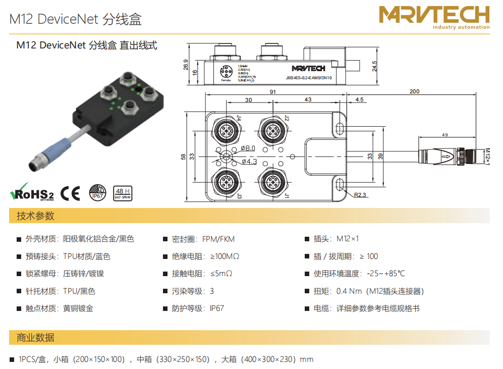 M 12 DeviceNetケーブルボックス-コネクタ式