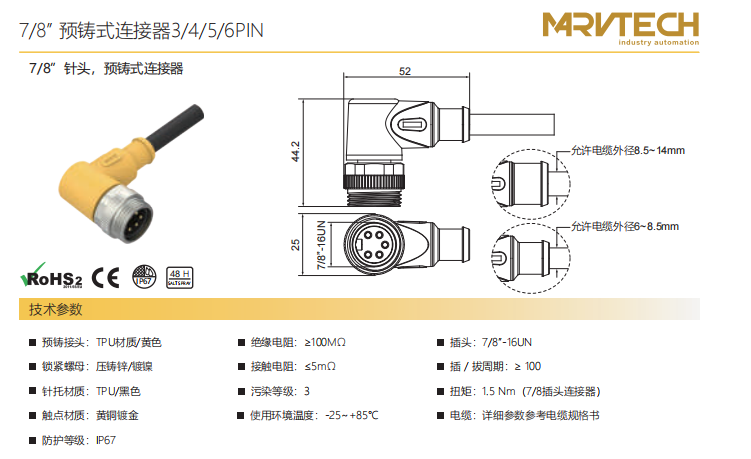 7/8"-針-プレキャストコネクタ-3+4+5+6 PIN