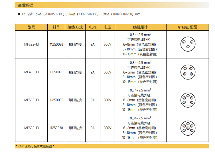 7/8インチ・ノズル・現場接続式コネクタ・プラスチックケース・鋳鋁ナット・3+4+5+6ピン