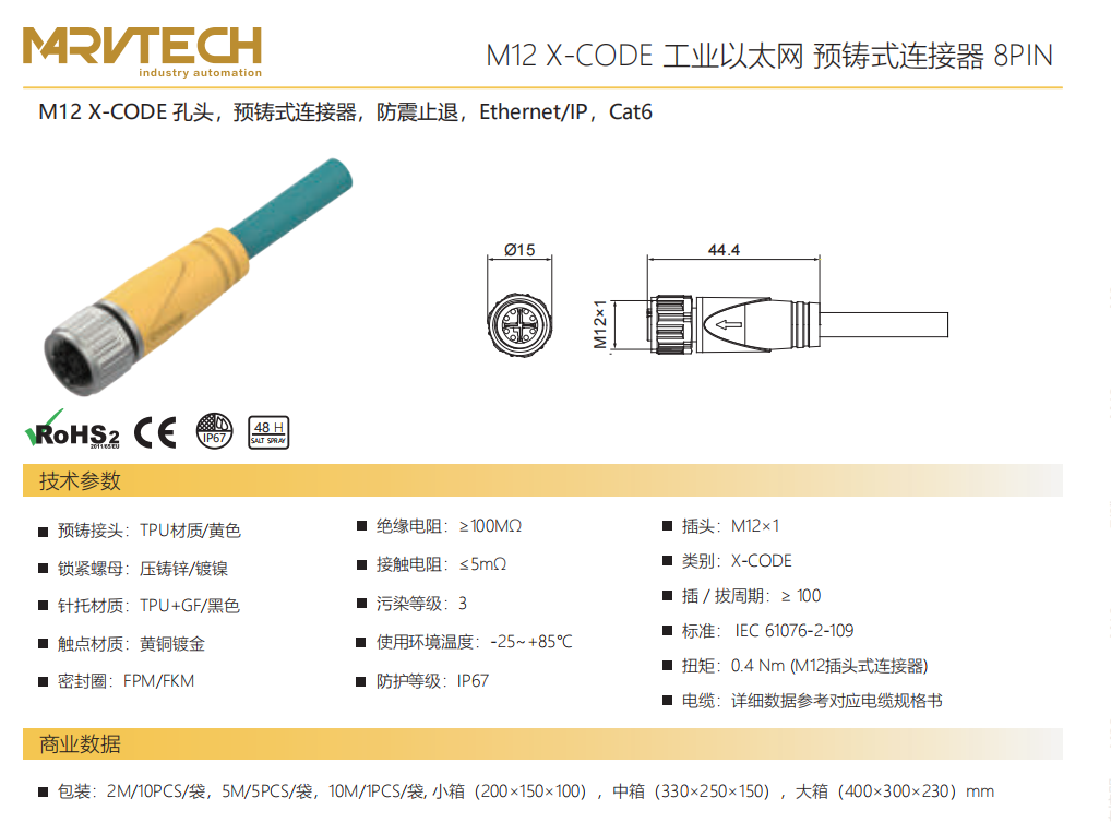 M 12 X-CODE口金-プレキャストコネクタ-防振後退防止-Cat 6-8 PIN