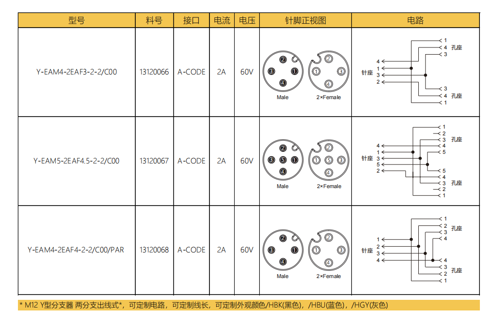 M 12オリフィスA-CODEフィールド結線可能コネクタ
