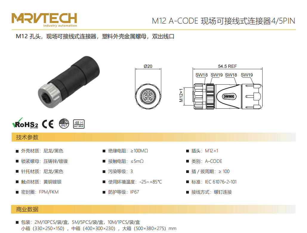 M 12口金A-CODE現場結線可能コネクタ-全金属ハウジング