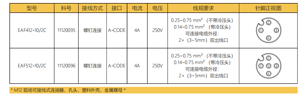 M 12オリフィスA-CODEフィールド結線可能コネクタ