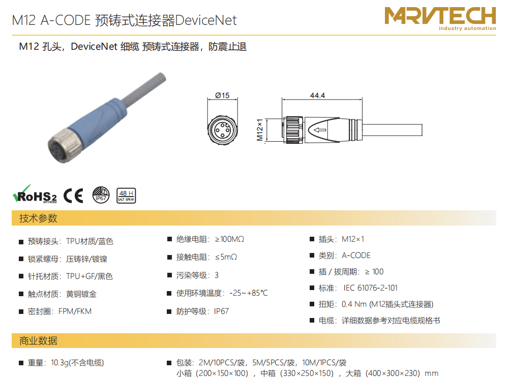 M 12オリフィスヘッド-DeviceNetケーブル-プレキャストコネクタ-防振後退防止