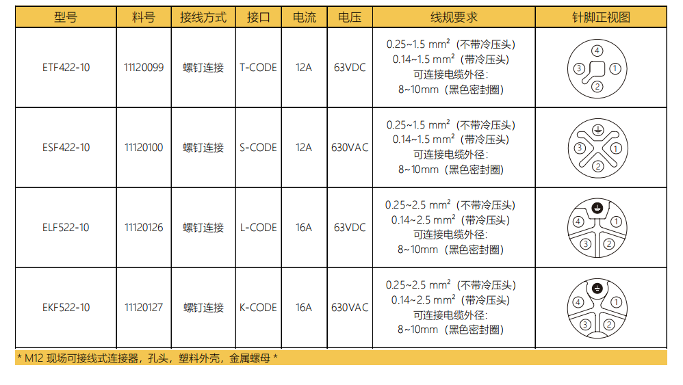 M 12端子TSLK-CODEフィールド結線可能コネクタ
