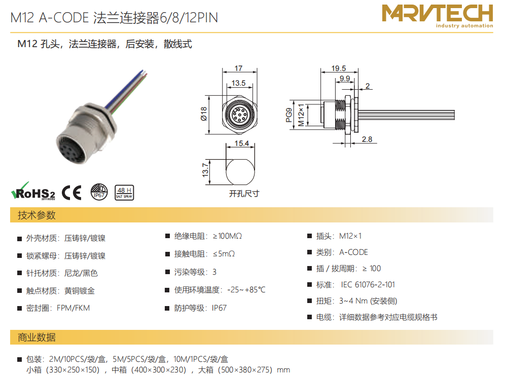 M 12口金-フランジコネクタ-後付け-散線式