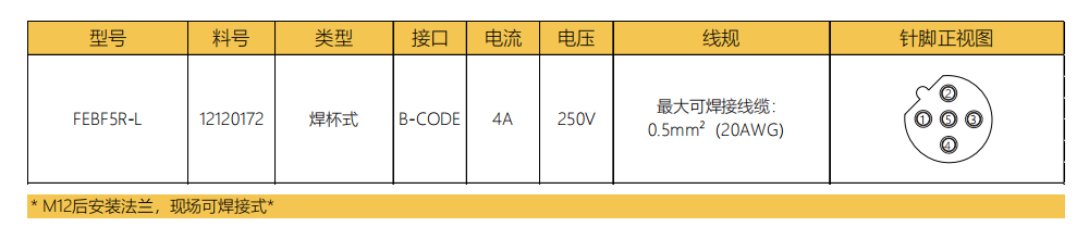 M 12口金-フランジコネクタ-後付け-溶接式-5 PIN
