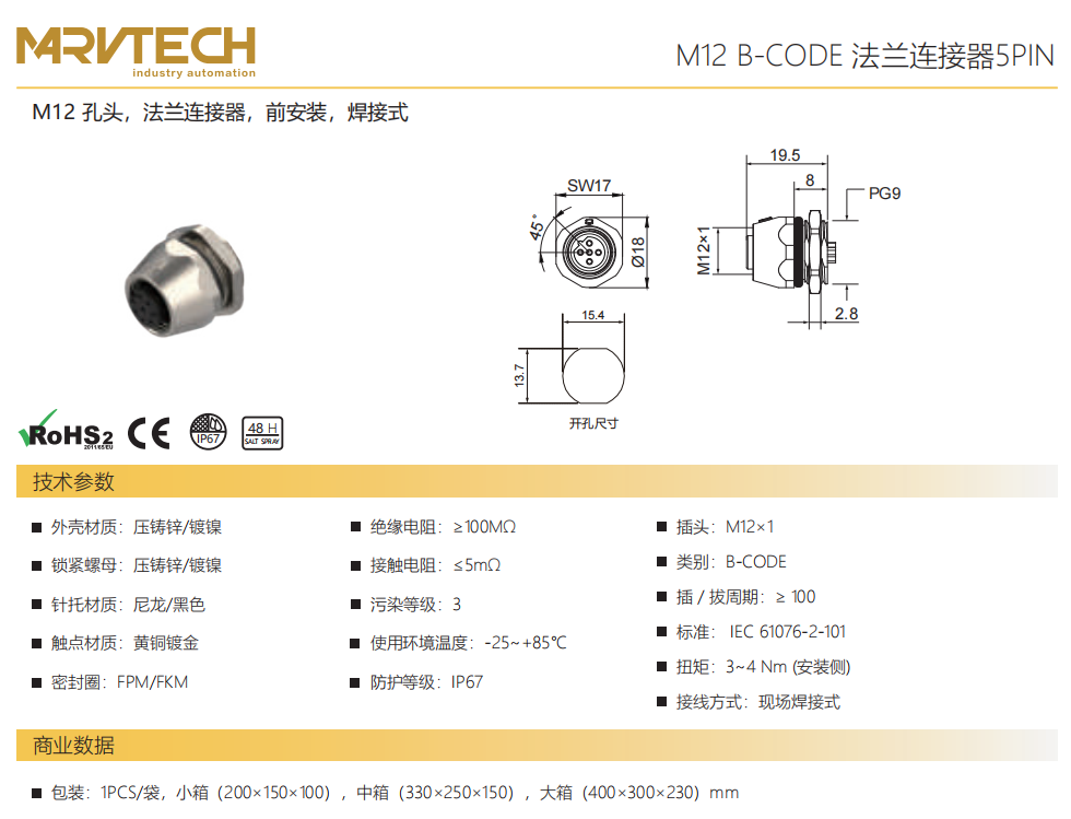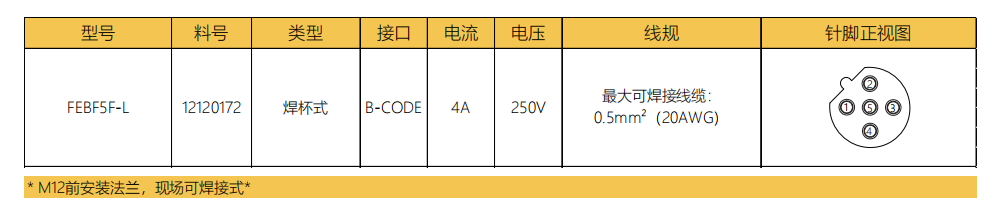 M 12口金-フランジコネクタ-前取付-溶接式-5 PIN