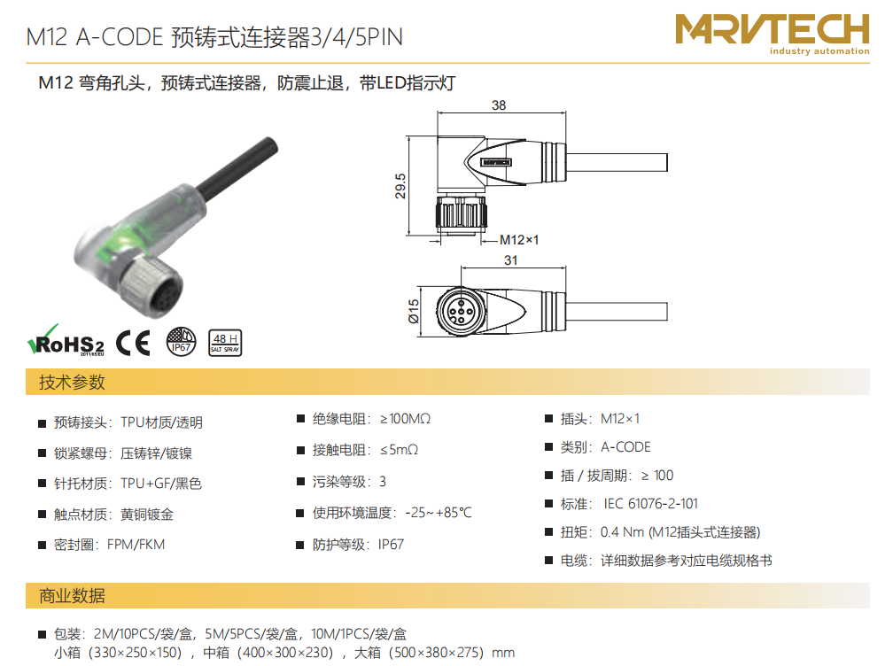M 12コーナーニードルA-CODE現場配線可能コネクタ