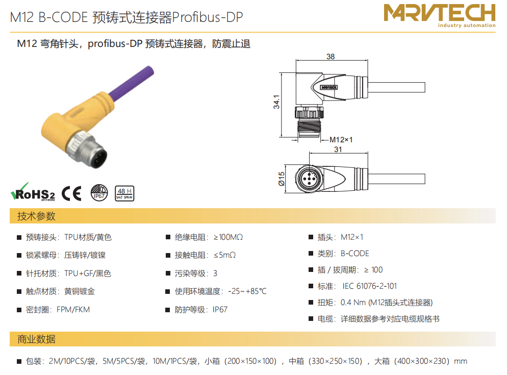 M 12コーナーニードル-profibus-DP-プレキャストコネクタ-防振後退防止