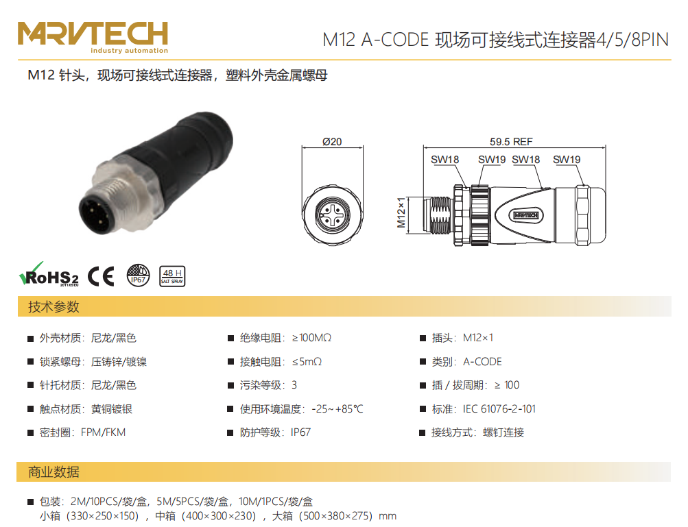 M 12針A-CODE現場配線可能コネクタ