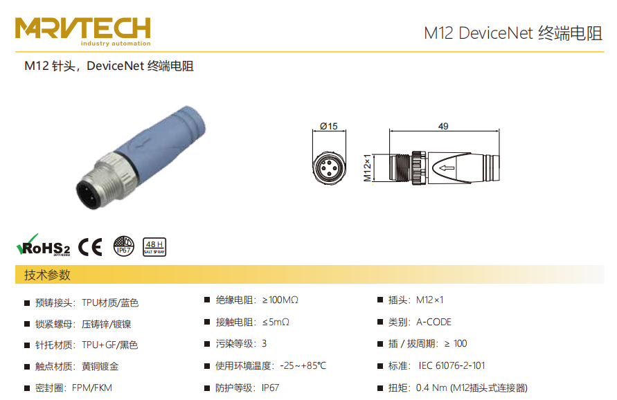 M 12ピン-profibus-DP-プレキャストコネクタ-防振後退防止