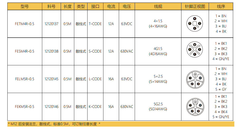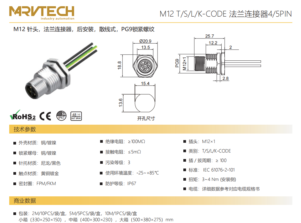 M 12ピン-フランジコネクタ-後付け-PCB溶接式-5 PIN