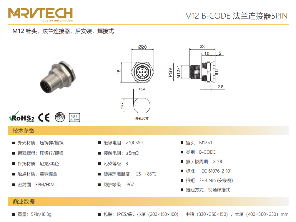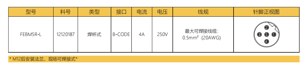 M 12ピン-フランジコネクタ-後付け-溶接式-5 PIN