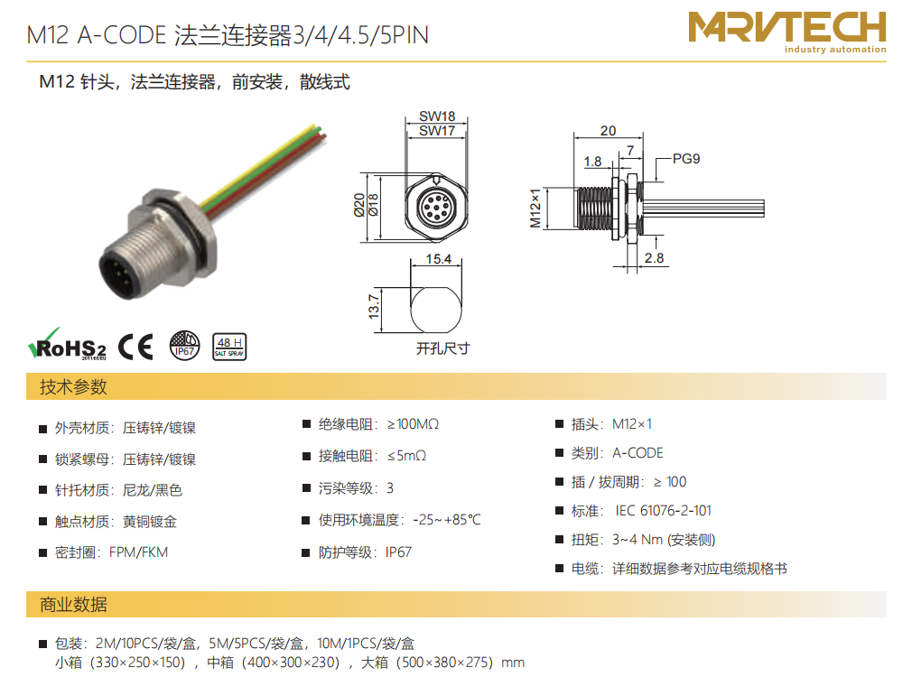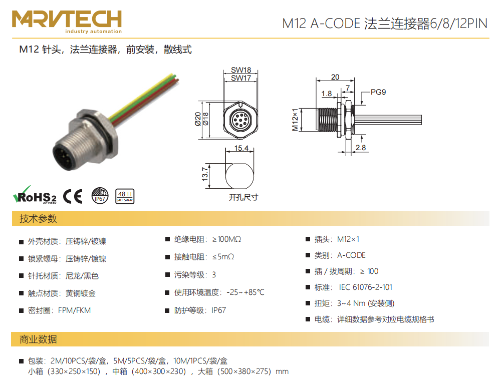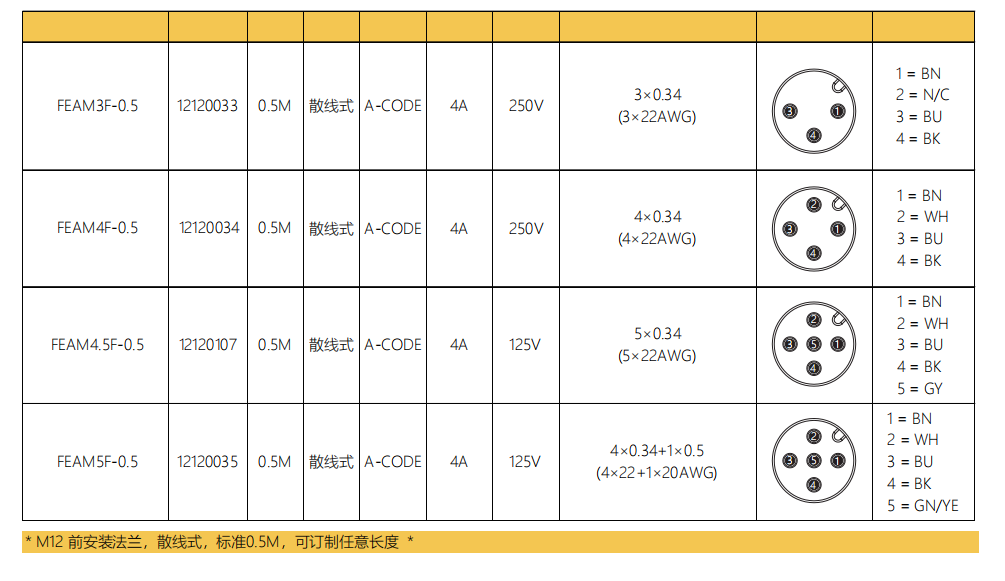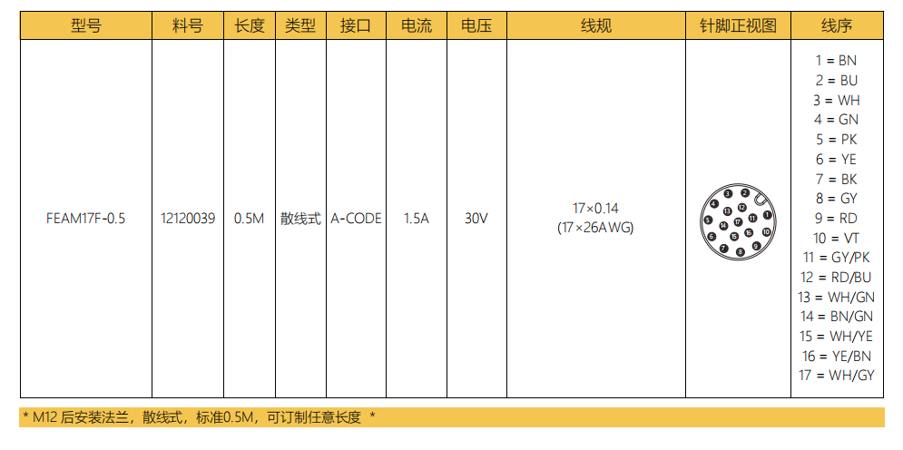 M 12ピン-フランジコネクタ-前取付-散線式