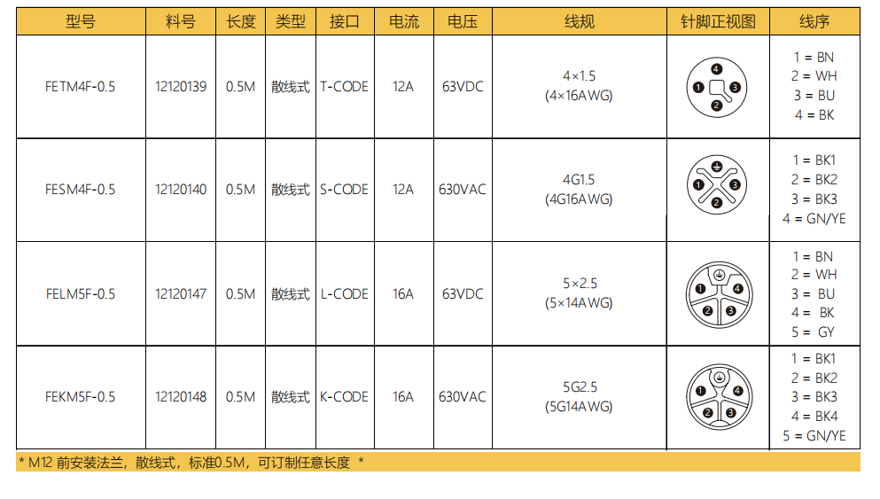 M 12ピン-フランジコネクタ-前取付-散線式