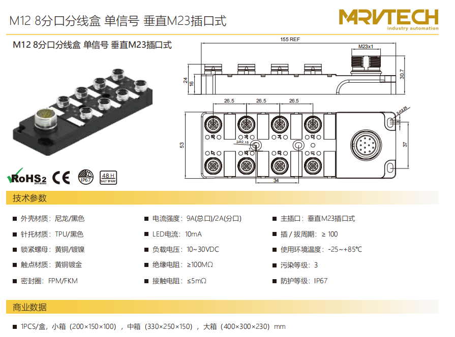 M 12-8スプリットスプリットボックス-単信号-垂直M 23ソケット式