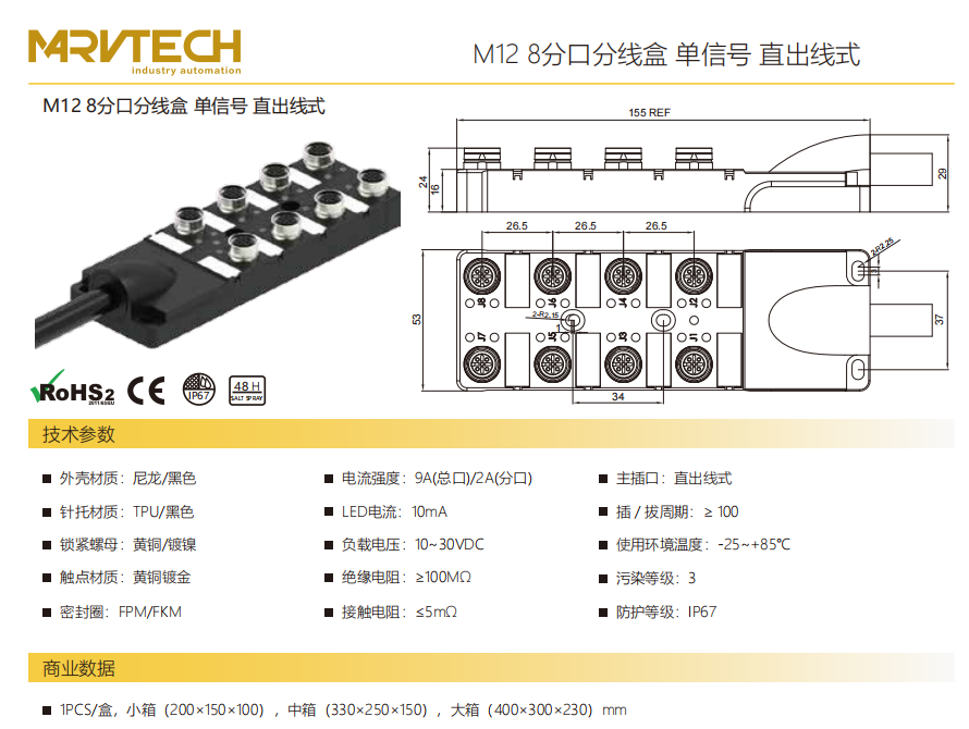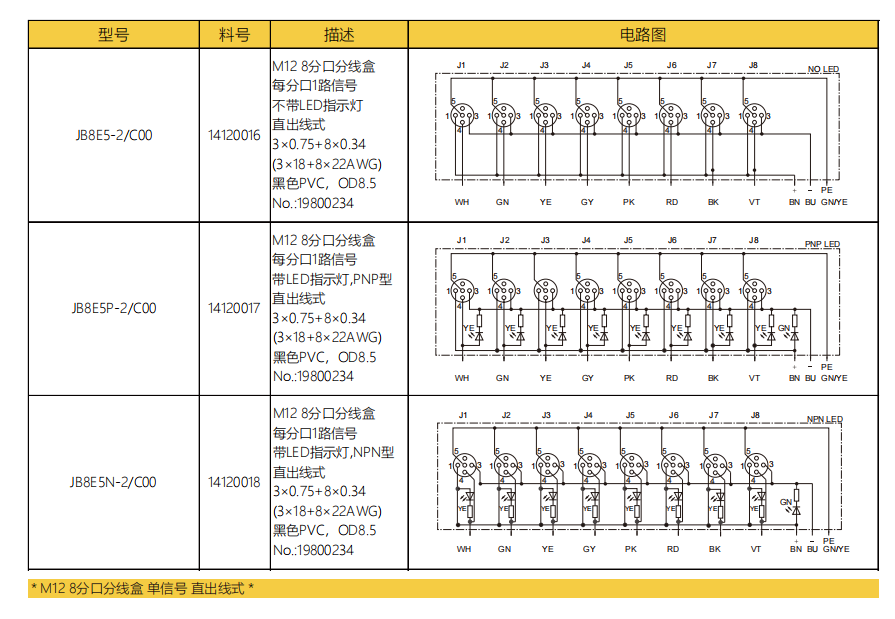 M 12-8スプリットスプリットボックス-単信号-直出線式