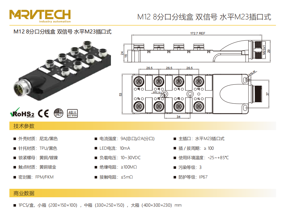 M 12-8スプリットスプリットボックス-デュアル信号-水平M 23ソケット式