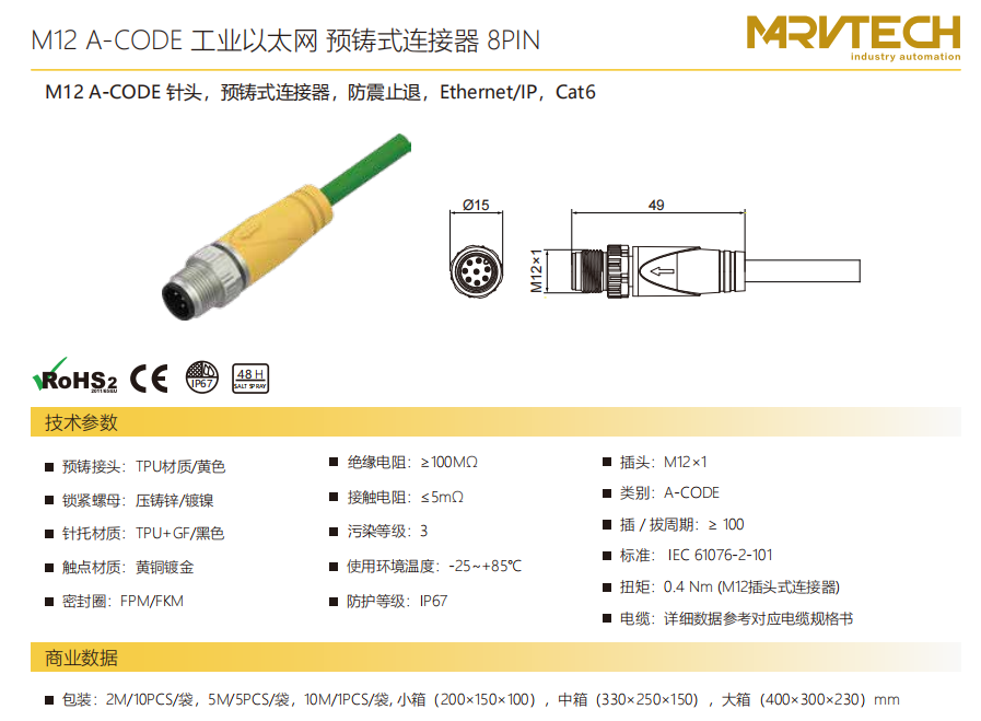 M 12-A-CODE-ピン-プレキャストコネクタ-防振後退防止-Cat 6-8 PIN