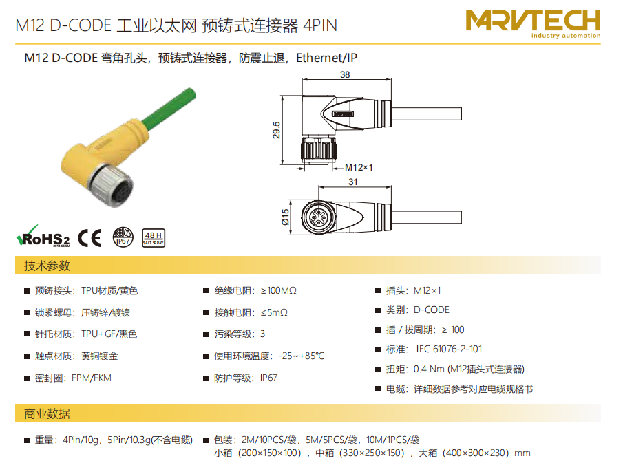 M 12-D-CODE-曲げ角穴子-プレキャストコネクタ-防振後退止め-4 PIN