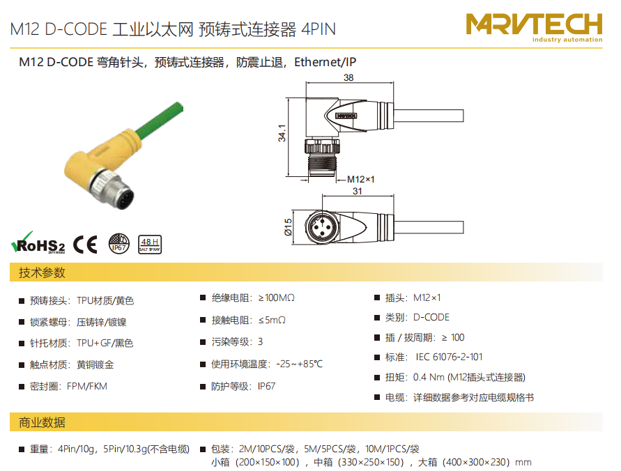 M 12-D-CODE-コーナーニードル-プレキャストコネクタ-防振後退止め-4 PIN