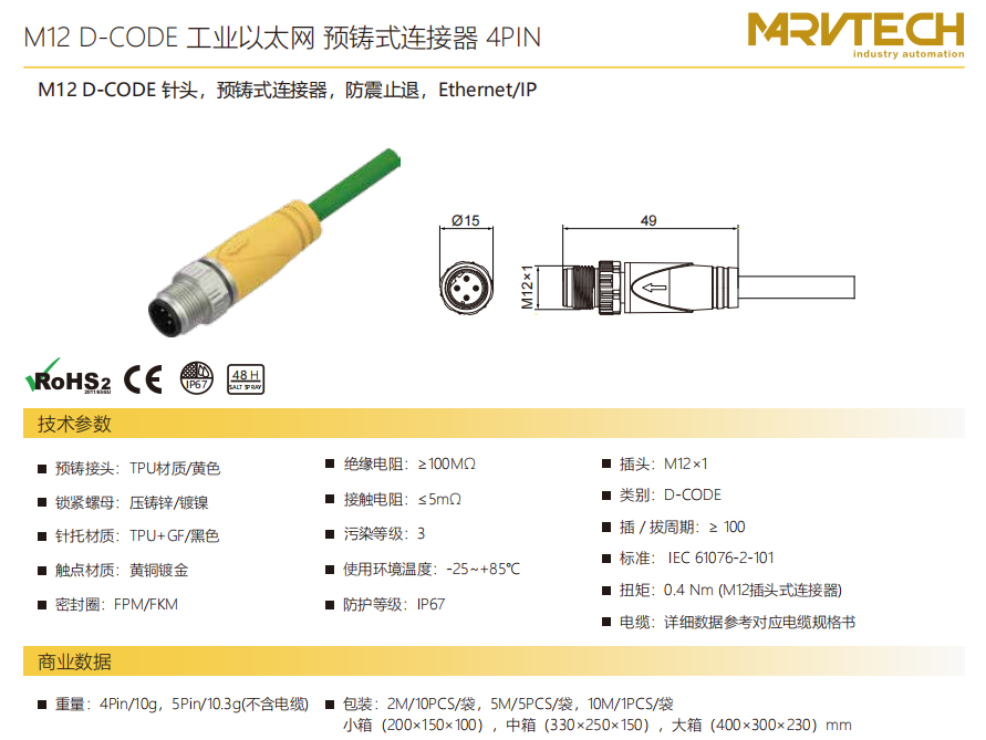 M 12-D-CODE-ニードル-プレキャストコネクタ-防振-後退防止-4 PIN