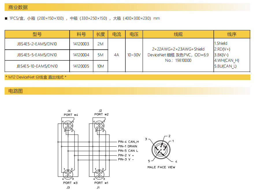 M 12-DeviceNet-分線ボックス-直出線式