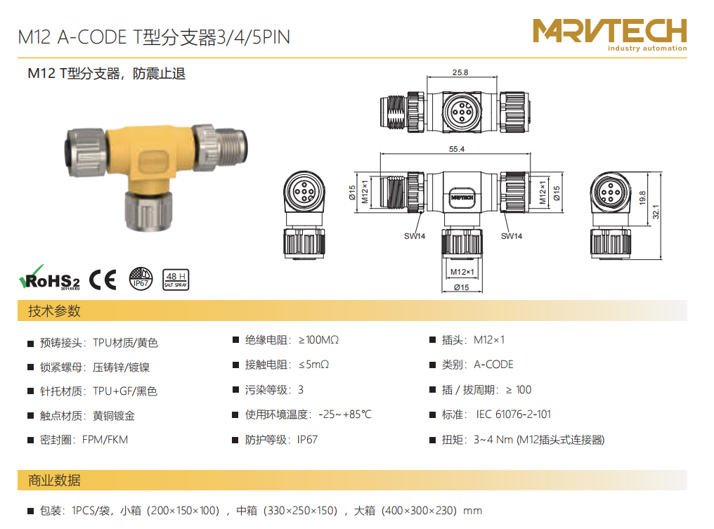 M 12-Profibus-DP-Y型分岐器-防振後退防止
