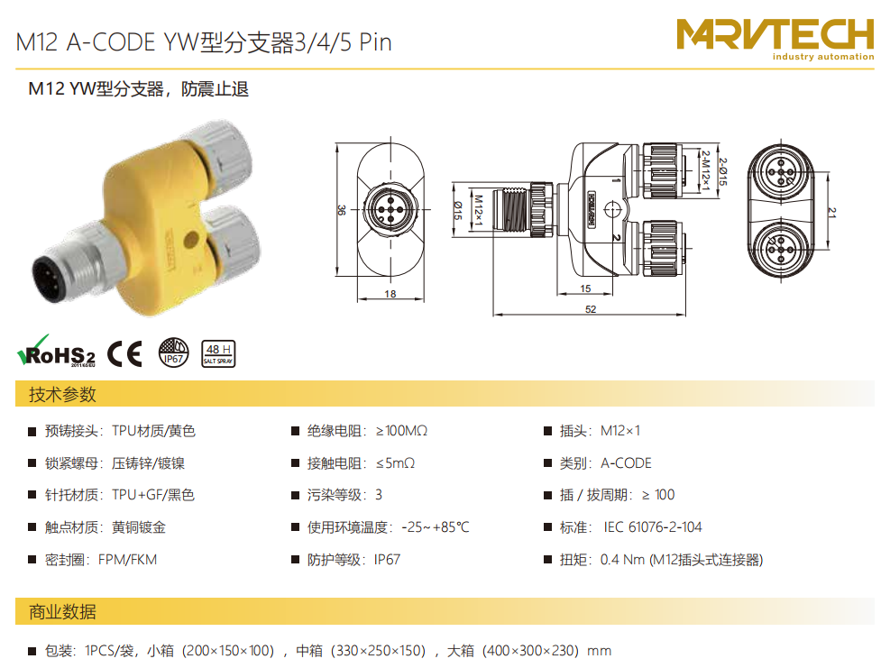 M 12-YWタイプ-分岐器-防振後退防止-3/4/5 Pin