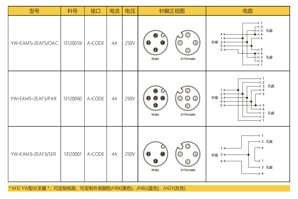 M 12-YWタイプ-分岐器-防振後退防止-3/4/5 Pin