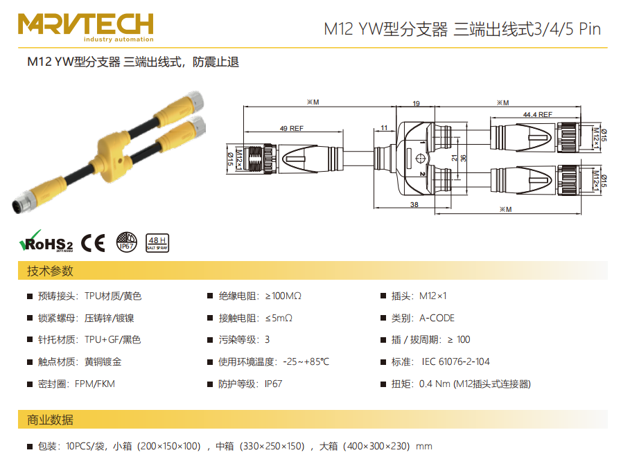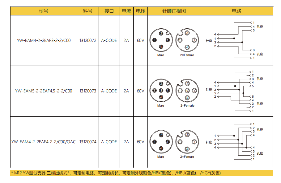 M 12-YW-型分岐器-三端出線式防震止退-3/4/5 Pin