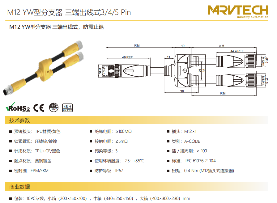 M 12-YW型分岐器-三端出線式防震止退-3/4/5 Pin