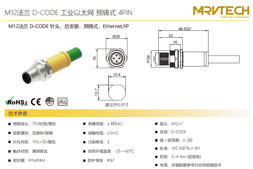 M 12-フランジ-D-CODE-口金-後取付-プレキャスト-4 PIN