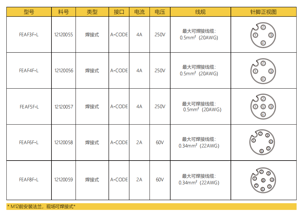 M 12-口金-フランジコネクタ-前取付-溶接式-3/4/5/6/8 PIN