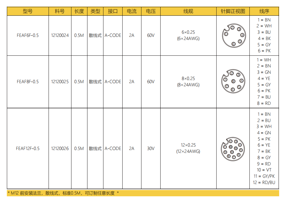 M 12-口金-フランジコネクタ-前取付-散線式-3/4/4.5/5 PIN