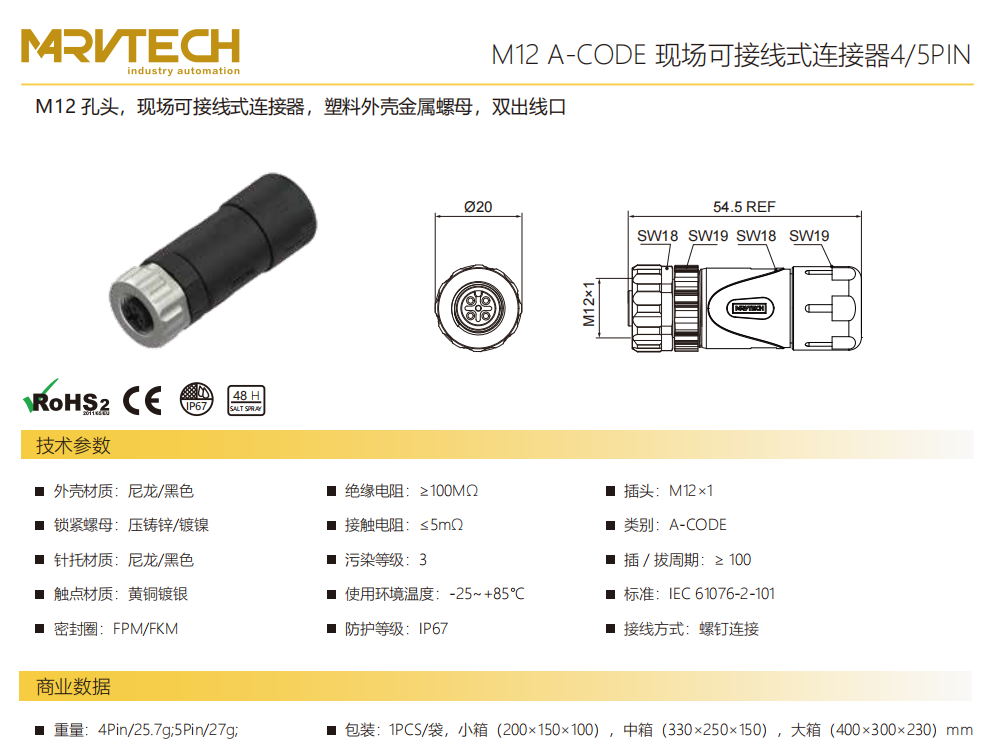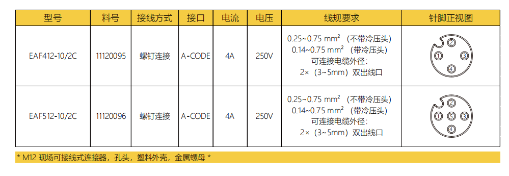 M 12-口金-現場結線可能コネクタ-プラスチックケース金属ナット-デュアルアウトレット-4/5 PIN