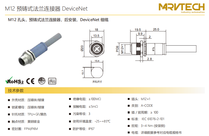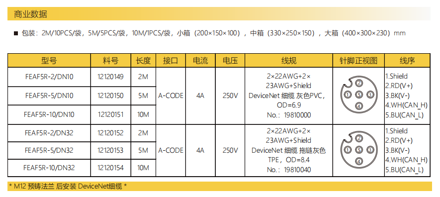 M 12-口金-プレキャストフランジコネクタ-後付け-DeviceNet-ケーブル