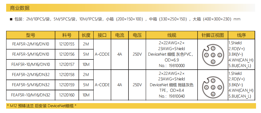 M 12-針-DeviceNet-ケーブル-プレキャストコネクタ-防振後退防止